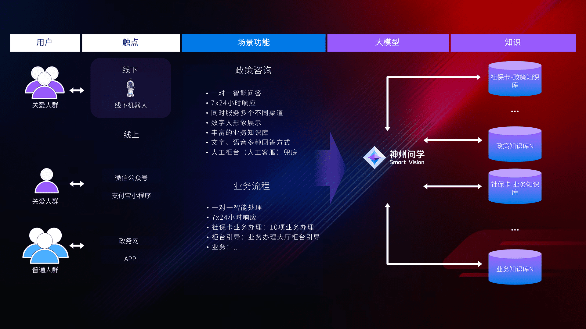 • 线上线下全覆盖:线上提供微信公众号、、、支付宝小程序、、、政务网、、、、app多种渠道,,,与线下机器人形成完整服务体系。。。。